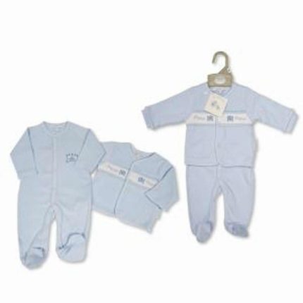 Comfy Baby Crown Suit Set –(0-3) Months Blue & Grey 👑
