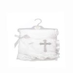 Celebrate your little one’s special day with the Heavenly Blessings Baby Shawl! 🌟 This elegant Christening wrap blanket is crafted in pristine white 🤍 and adorned with delicate satin frills and lace trim 🕊️, featuring a charming cross detail ✝️ for a timeless, sacred touch.