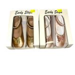 🦋✨ Early Steps Girls Rose Gold & Gold Butterfly Shoes Add a touch of sparkle to your little girl’s outfit with the Early Steps Butterfly Shoes. Designed in a stunning rose gold and gold finish 🌸, these pretty shoes feature a delicate butterfly detail 🦋 that makes them perfect for parties, family outings, or special occasions. With a soft, comfortable fit and easy fastening, they’re practical yet stylish for little feet 👣.
