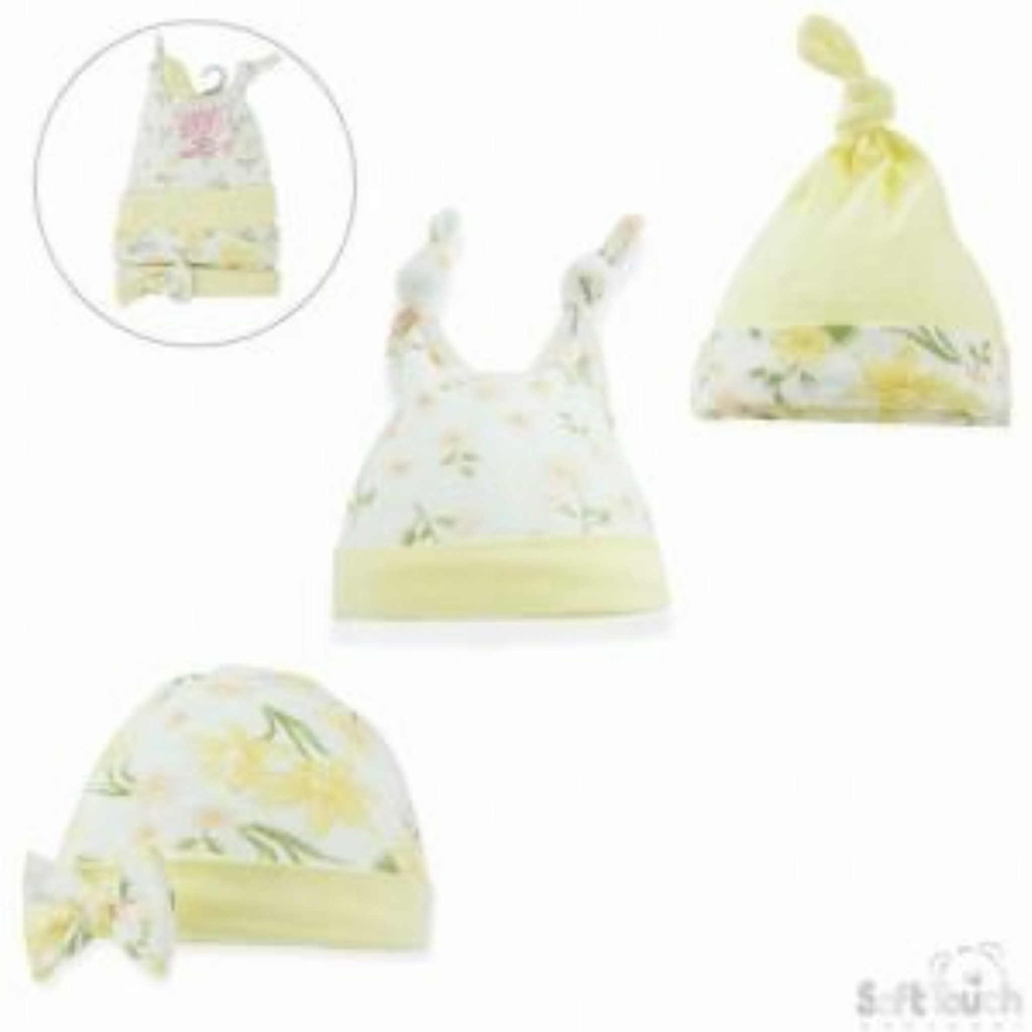 Keep your little sunshine cozy and stylish! ☀️ This adorable 3-piece set features ultra-soft, breathable baby hats in a cheerful yellow floral print 🌸. Each hat is designed with a gentle stretch to fit snugly and comfortably on your baby’s delicate head. One of the hats comes with a sweet knotted top 🎀, adding an extra touch of cuteness! Perfect for everyday wear, nap time, or sunny strolls.