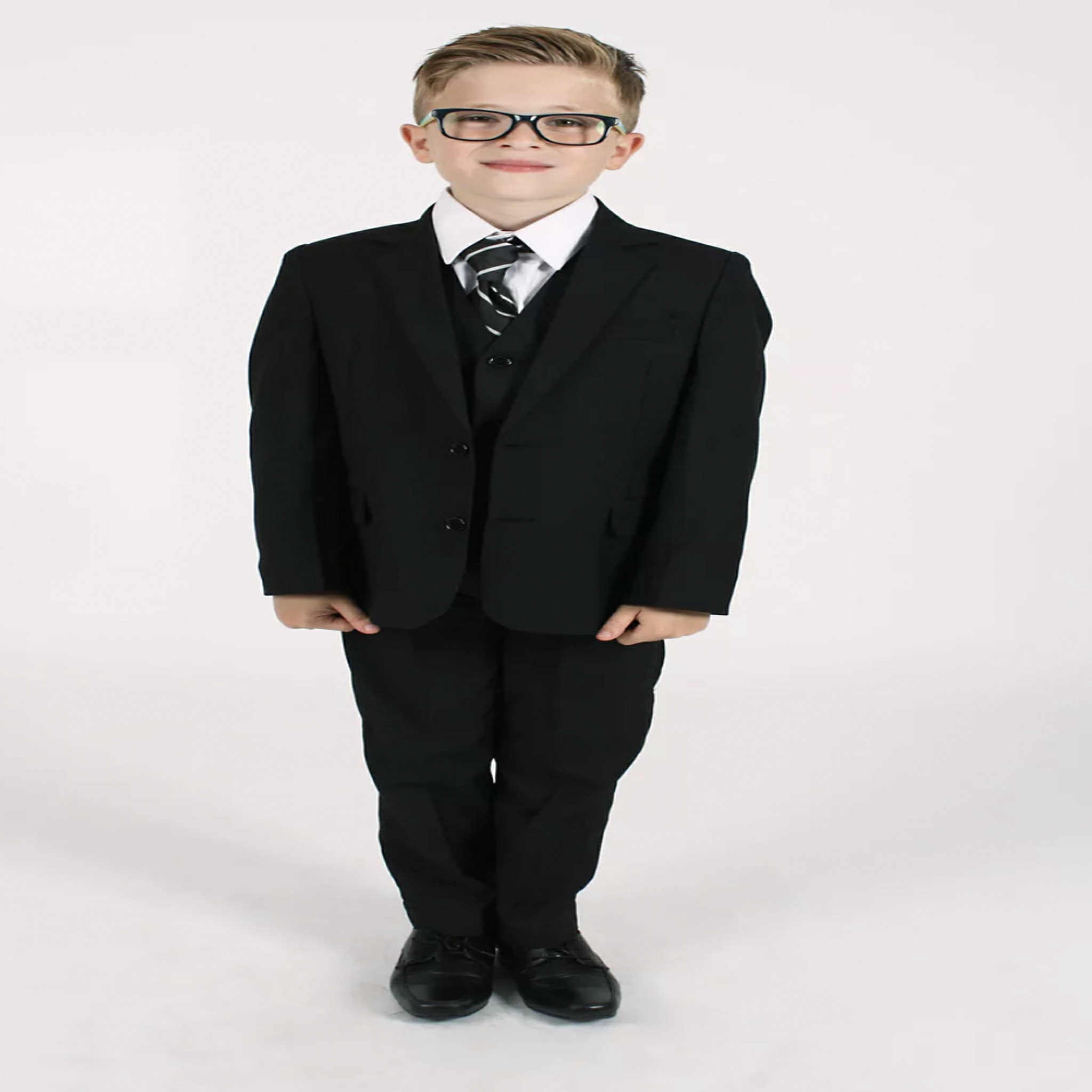 Dress your little gentleman to impress with the timeless Vivaki 5 Piece Black Suit – a classic formalwear set perfect for weddings, christenings, parties, and special occasions. Designed with sophistication and comfort in mind, this complete outfit ensures your boy looks sharp and stylish for any event.