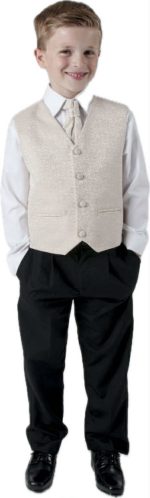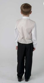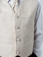 Make your little gentleman stand out in style with our Vivaki 4 Piece Swirl Suit in Champagne – a timeless outfit designed for weddings, christenings, parties, and formal occasions. With its elegant swirl stitch detailing and coordinated accessories, this suit offers the perfect blend of comfort and sophistication.